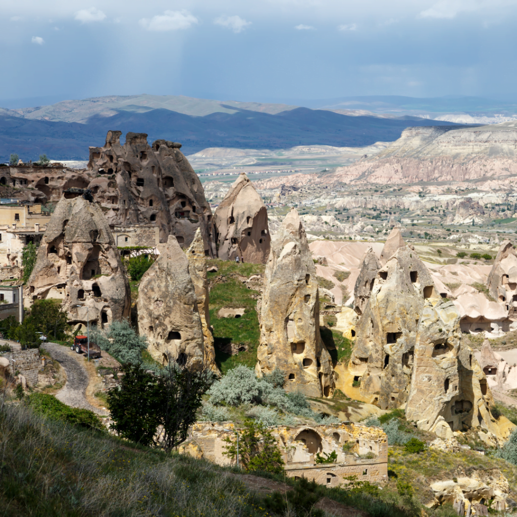 3.เมืองคัปปาโดเกีย (Cappadocia) เป็นเมืองที่เต็มไปด้วยหินรูปแท่งกรวยคว่ำปล่อง กระโจม โดม และอีกสารพัดรูปทรง ประหนึ่งดินแดนในเทพนิยาย ชนพื้นเมืองเรียกขานว่า “ดินแดนแห่งปล่องไฟนางฟ้า” ได้รับการขึ้นทะเบียนให้เป็นมรดกโลกโดย ยูเนสโก