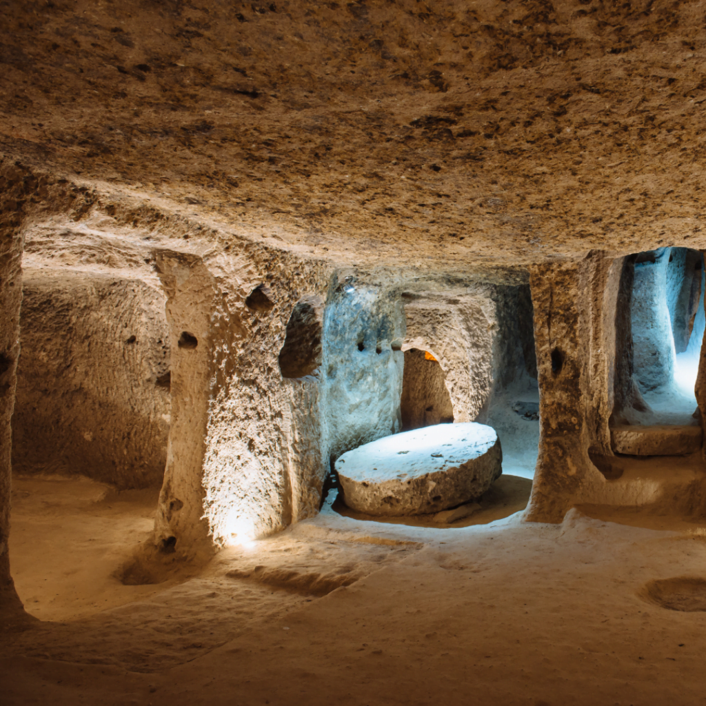 4.เมืองใต้ดิน (Underground city) เป็นสถานที่ที่ผู้นับถือศาสนาคริสต์ใช้หลบภัยจากชาวโรมัน ภายในมีโซนห้องต่างๆ เช่น ห้องนอน ห้องนำ ห้องครัว ห้องหมักไวน์ ห้องประชุม คอกสัตว์ โบสถ์ บ่อน้ำ บางห้องเป็นห้องโถงกว้างว่ากันว่าจุคนได้ถึง30,000 คน