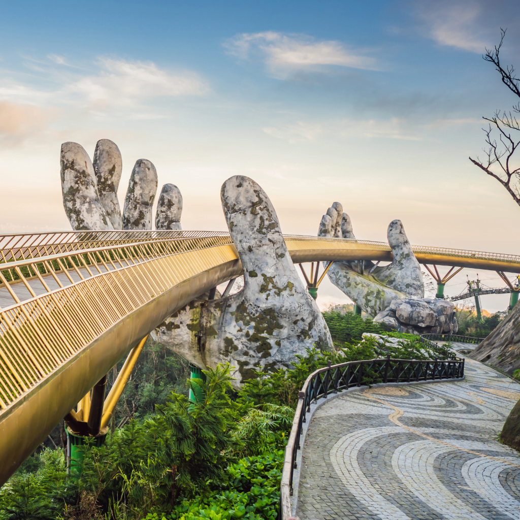 สะพานมือสีทอง สถานที่เช็คอินสุดฮิต บนบาน่าฮิลล์ วิวสวยบรรยากาศดี ความยาวประมาณ 150 เมตร มีความสูงจากระดับน้ำทะเล 1,400 เมตร