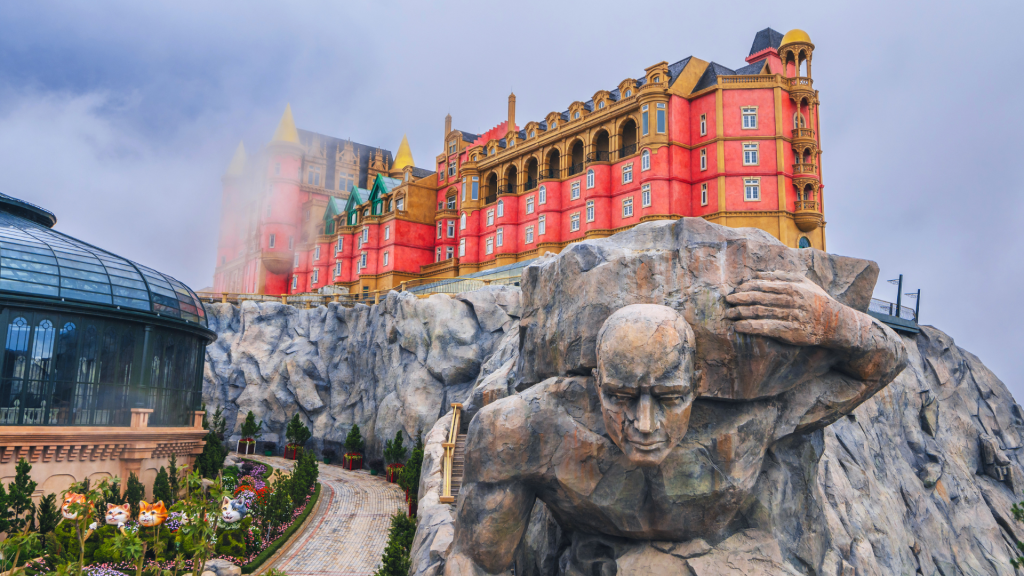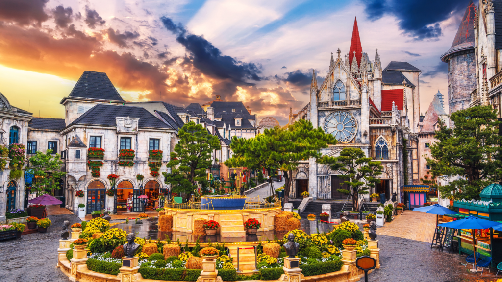 อีกหนึ่งจุดเช็กอินที่ไม่ควรพลาดคือ French Village หมู่บ้านสไตล์ยุโรปที่จำลองบรรยากาศเมืองฝรั่งเศสโบราณไว้อย่างสวยงาม ไม่ว่าจะเป็นโบสถ์ หอคอย ปราสาท และถนนหินสุดโรแมนติก ช่วงเย็นและกลางคืนยิ่งเพิ่มความสวยงามด้วยแสงไฟอบอุ่น เหมาะสำหรับการเดินเล่น ถ่ายภาพ และดื่มด่ำบรรยากาศสุดพิเศษ