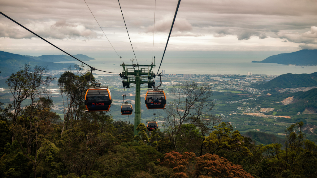 การขึ้นสู่ Ba Na Hills ต้องนั่งกระเช้าลอยฟ้าระยะทางยาวท่ามกลางภูเขาและผืนป่าเขียวขจี ซึ่งถือเป็นอีกหนึ่งประสบการณ์ที่น่าประทับใจ ด้านบนยังเต็มไปด้วยสวนดอกไม้ สวนสนุก ร้านอาหาร และมุมถ่ายรูปมากมาย เที่ยวได้ทั้งครอบครัวในวันเดียวแบบคุ้มค่า